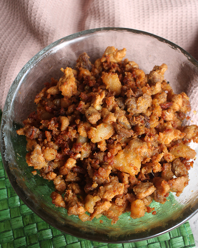 - Skinless chorizo that is salty, sweet, and a touch sour