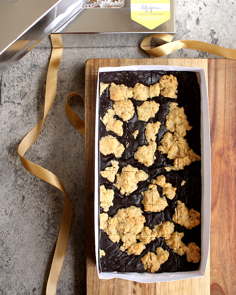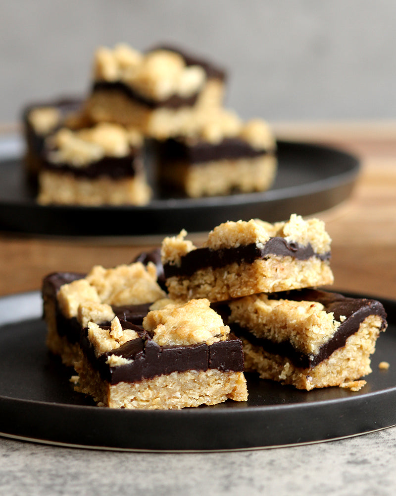 • Choco Oat Fudgies are our take on the classic "revel bars." Thick, chewy oatmeal layers sandwich a rich, fudgy chocolate center, making these bars a perfect blend of hearty and decadent.