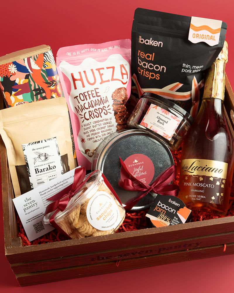 Elevate gifting with our thoughtfully curated hampers, featuring local artisanal food finds and treasures. More than just presents, each crate expresses care and consideration, showcasing handpicked delights tailored to the recipient's unique tastes.