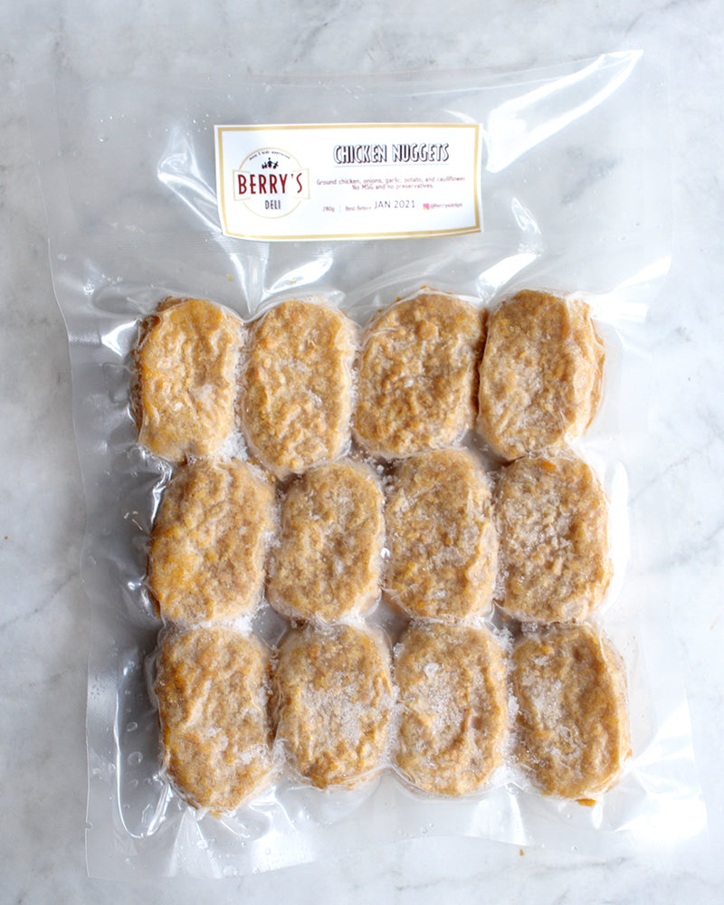 - In each nugget are chicken ground chicken, onions, garlic, potato, and cauliflower