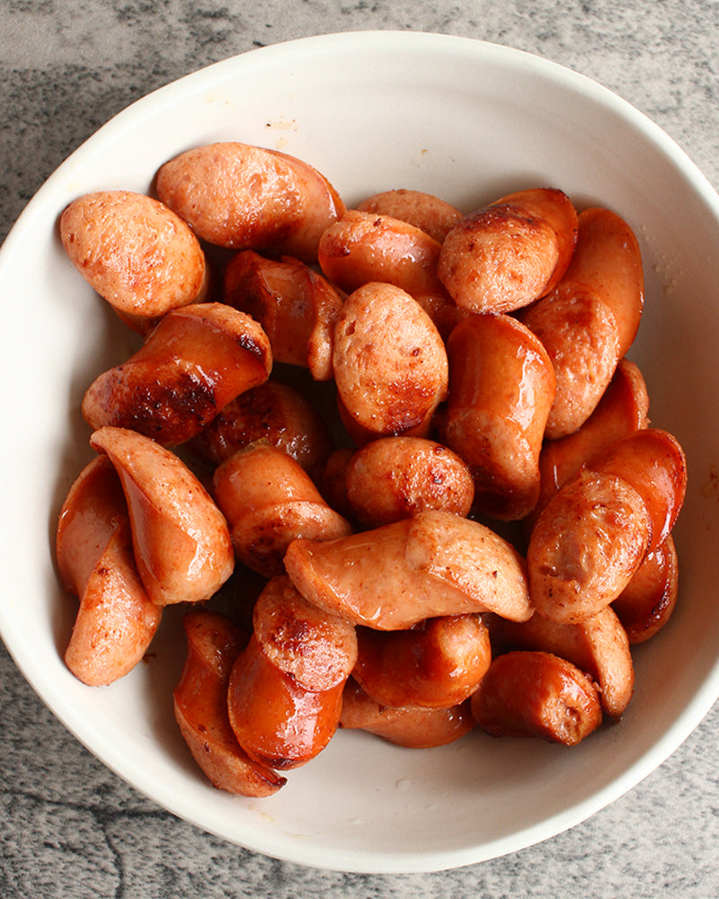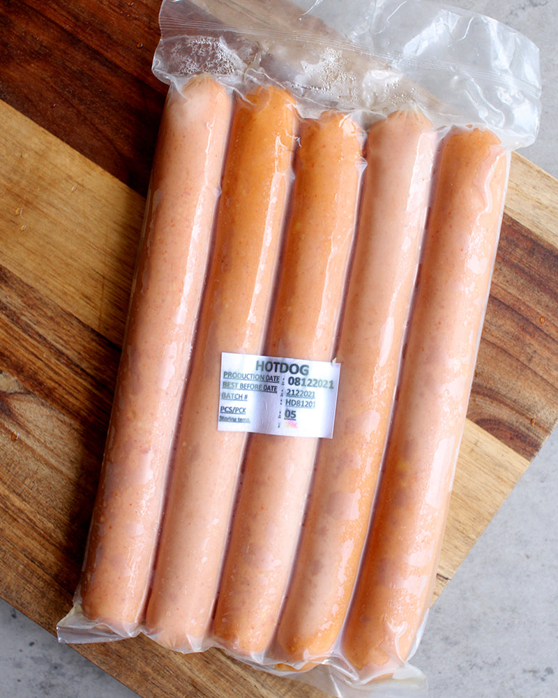- Cooking suggestion: Boil water in cooking pot. Once it boils, turn down heat and drop hotdogs in the pan. Blanch in water for 3mins. Once done, sear hotdogs in frying pan with a bit of oil to give some color and a smoked aroma. Do this under low fire for 1 min.
