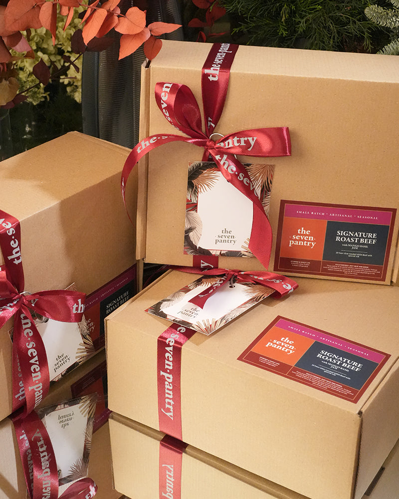 Elevate your feast with The Seven Pantry's Signature Roast Beef. 10-hour slow-roasted USDA beef, infused with secret BK rub, melts in your mouth. A culinary masterpiece needing no gravy, just savoring.