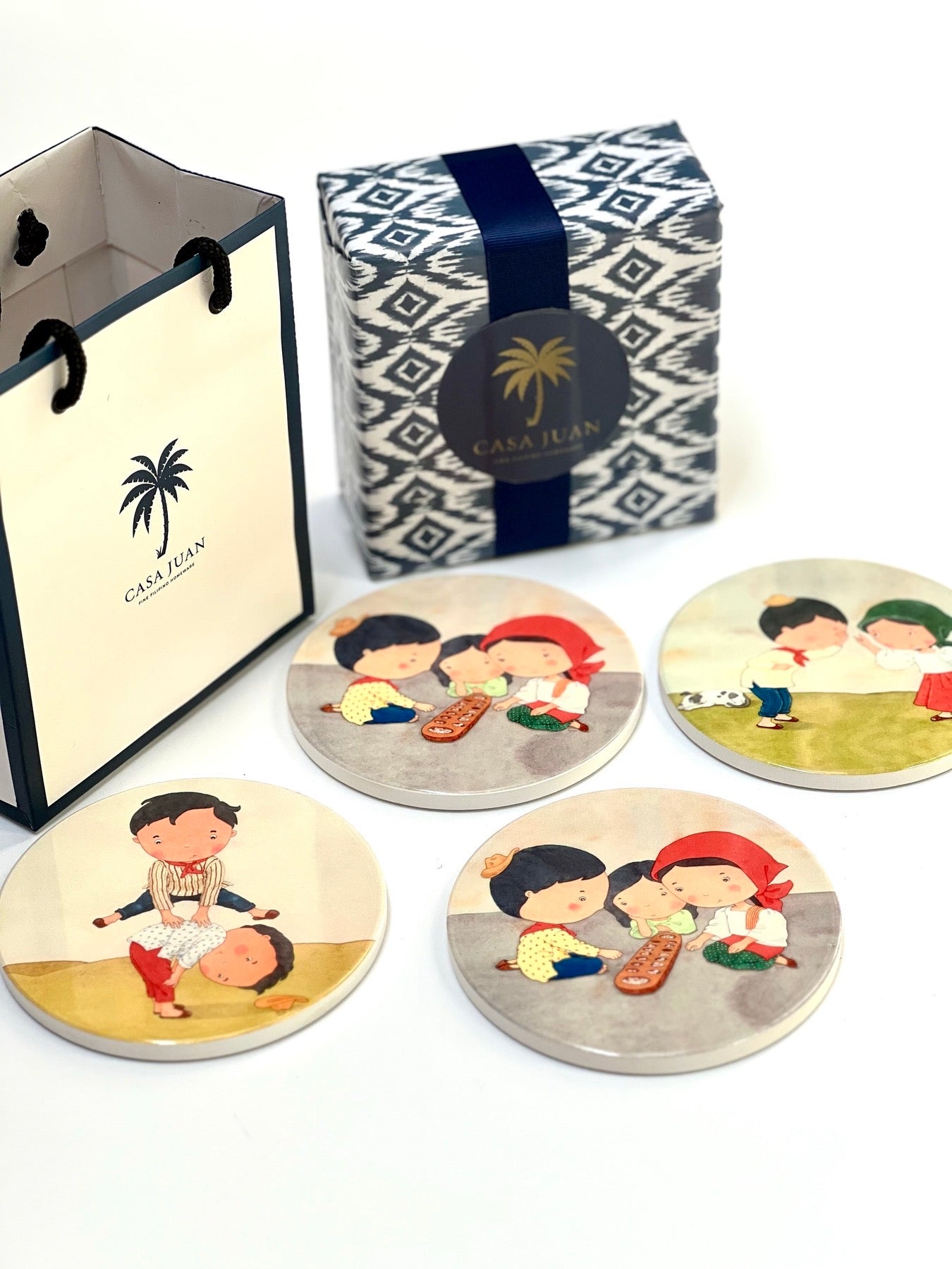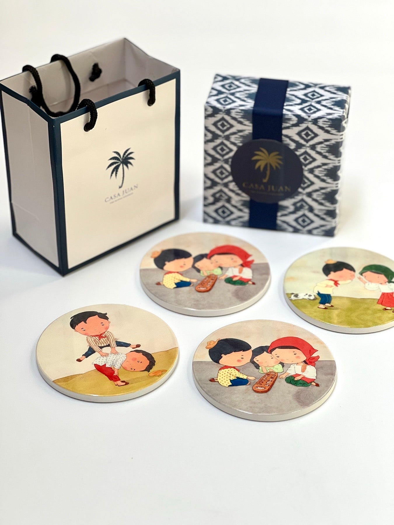 Larong Pinoy and Street Food Coaster Set/ Salad Plates