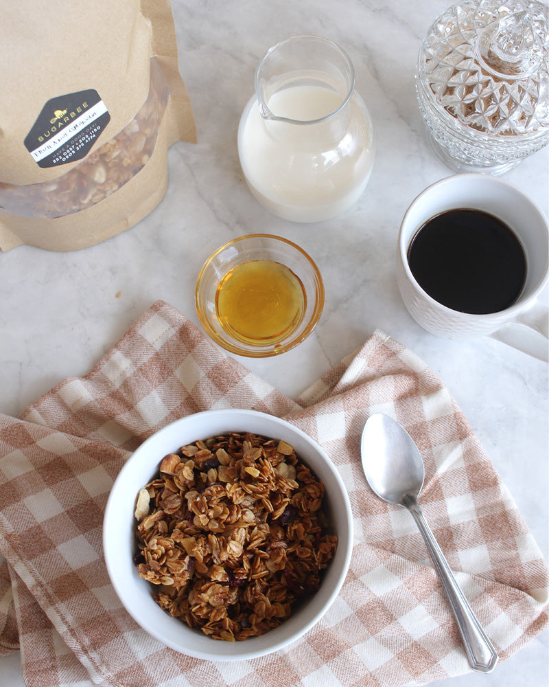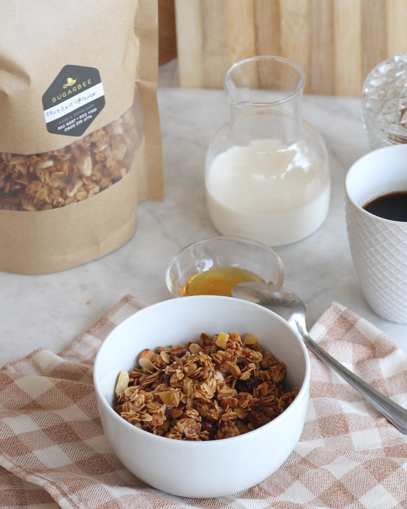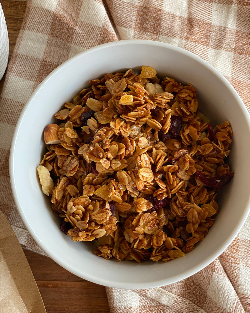Kickstart your day with a crunch! Whether you're filling up a breakfast bowl, grabbing an on-the-go snack, or topping your yogurt, our granola is designed to energize you and brighten your day with every bite.