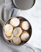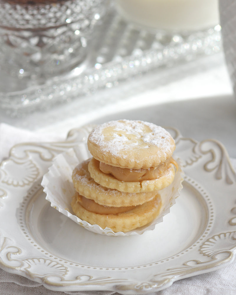 Alfajores: Buttery Shortbread Cookies + Dulce de Leche Dream. Picture two delicate, melt in your mouth cookies with a creamy dulce de leche filling in between. That's what makes Alfajores so special—a perfect blend of crumbly shortbread and a smooth, indulgent center.