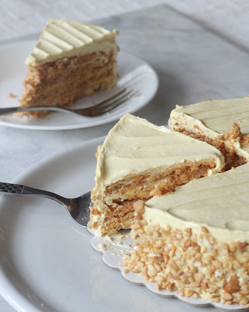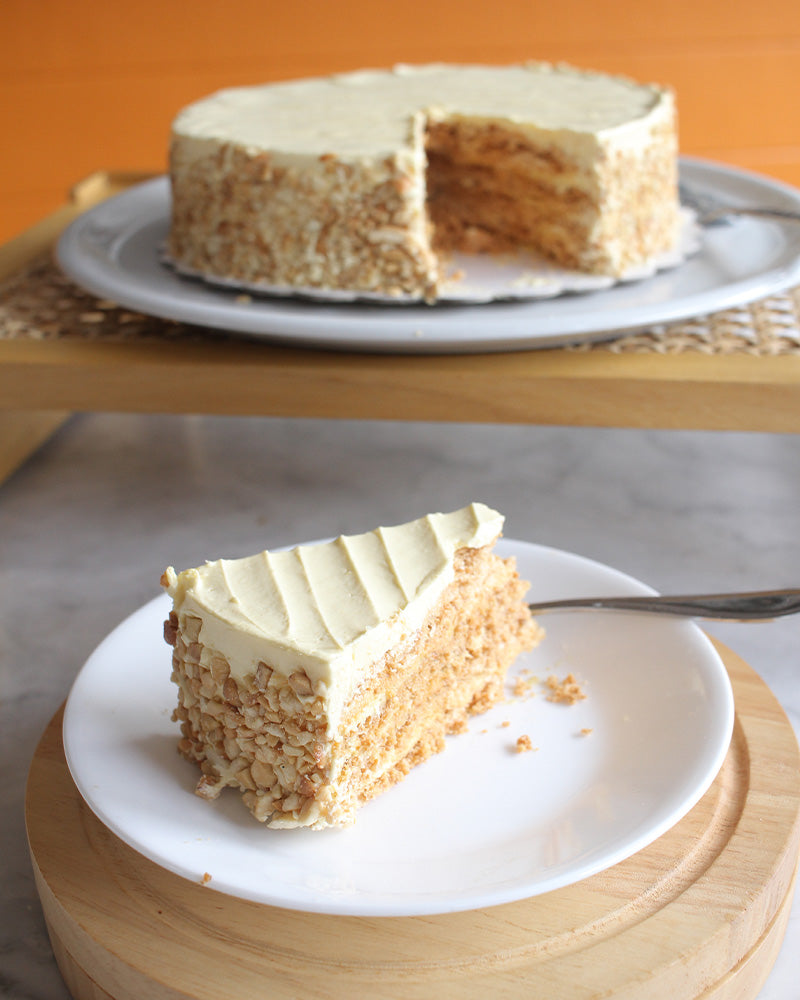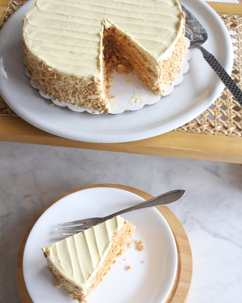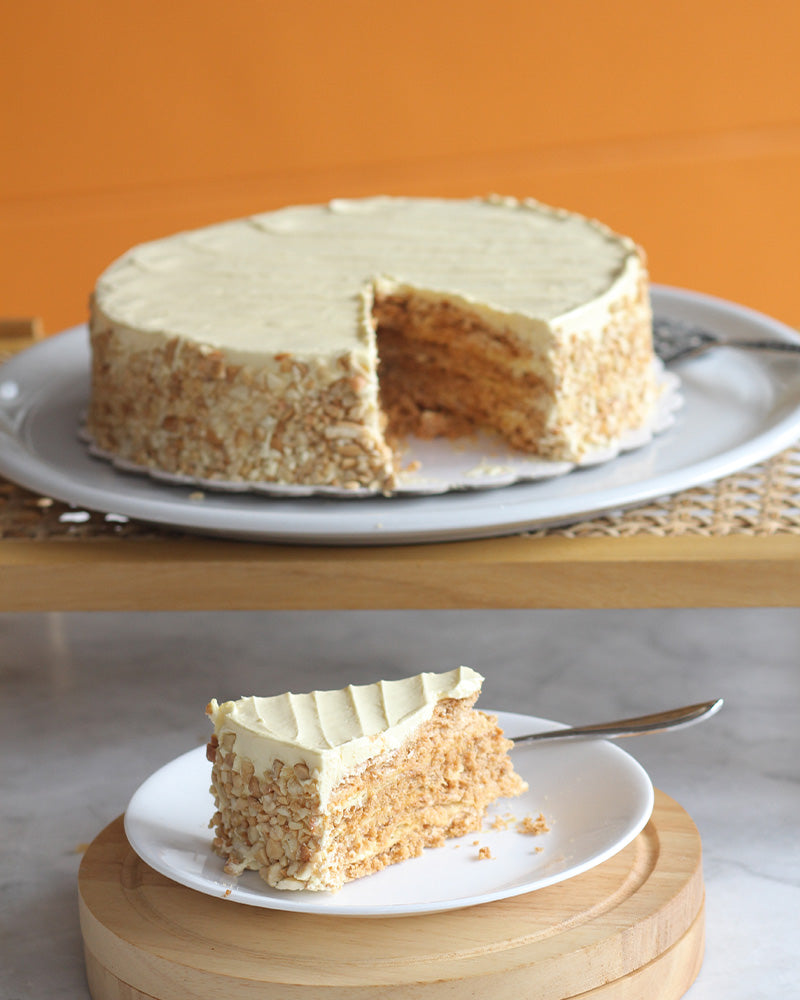 - Layers of chewy, cashew meringue and butter cream complemented for a sansrival like no other