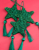 Starburst: Handwoven Abaca Ornament in Holiday Green (5" Star with Tassel)